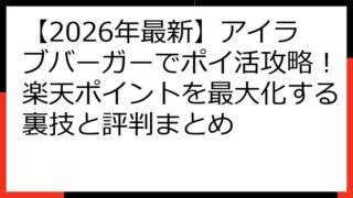 【徹底比較】アイラブバーガーは楽天ポイントサイト経由がお得!他サイト案件の有無も解説 「アイラブバーガー」でのポイ活に興味をお持ちのあなたへ。 この記事では、数あるポイントサイトの中で、一体どのサイトが最もお得に楽天ポイントを稼げるのか、徹...