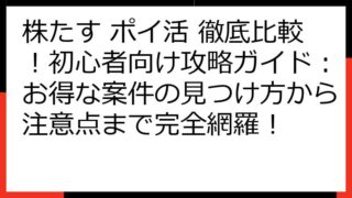 株たす 株たす×ポイントサイト完全攻略!初心者も安心、お得に株を学ぶ!株たす案件経由で始める賢い投資術