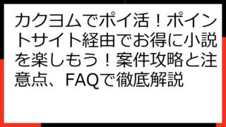 【2024年最新】カクヨムでポイ活はできる?ポイントサイト案件の徹底解説と攻略法! カクヨムでのポイ活に興味をお持ちのあなたへ、最新情報と攻略法をお届けします。 この記事では、カクヨムとポイントサイトの関係について、詳細に解説します。 現在...