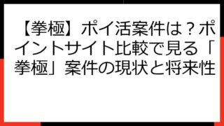 拳極 【2025年5月最新】拳極ポイ活案件は?登場時期・報酬・攻略法・おすすめサイトを徹底解説! 【2025年5月最新】拳極ポイ活案件はある?将来性・攻略法・おすすめサイトを徹底解説! 「拳極 -拳で繋ぐ物語-」でポイ活を始めたいと考えているあなたへ。 この記事では、2025年5月現在のポイ活案件の状況を徹底調査し、残念ながら現時点では... 2025.09.01 拳極