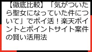 【徹底比較】「気がついたら聖女になっていた件について」でポイ活!楽天ポイントと外部サイト案件の賢い活用法 「気がついたら聖女になっていた件について」で、ポイ活に挑戦したいあなたへ。 この記事では、現在主流となっているアプリ内楽天リワードでの...