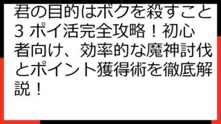 君の目的はボクを殺すこと3(ボク殺3)ポイ活完全ガイド:最新案件とポイントサイト徹底比較 この記事では、「君の目的はボクを殺すこと3」(通称ボク殺3)のポイ活に焦点を当て、ポイントサイトの比較、効率的な攻略方法、そして将来の案件予測まで、網...