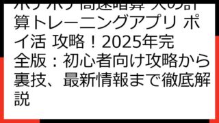 ポチポチ高速暗算 犬の計算トレーニングアプリ攻略!ポイ活で賢く稼ぐための徹底比較と最新情報 「ポチポチ高速暗算 犬の計算トレーニングアプリ」は、楽しみながら計算力を鍛えられる人気のアプリです。 しかし、ポイ活案件として利用する際には、どのポ...
