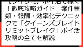 【2025年版】クイーンズブレイドリミットブレイク(クイリミ)ポイ活案件徹底比較!おすすめサイトと攻略法 「クイーンズブレイドリミットブレイク(クイリミ)」をプレイして、お得にポイントを貯めたいと考えているあなたへ。 この記事では、2025...