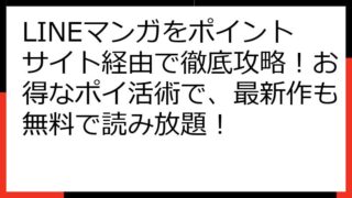 LINEマンガ LINEマンガをポイントサイト経由で徹底攻略!お得なポイ活術で、最新作も無料で読み放題!