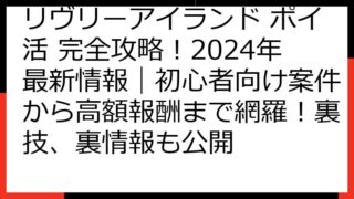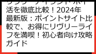 リヴリーアイランド ポイ活完全ガイド:2024年最新版!ポイントサイト徹底比較で、お得にリヴリーライフを始めよう! この記事では、「リヴリーアイランド」のポイ活について、徹底的に解説します。 ポイントサイトを利用して、ゲームをお得に楽しむ方...