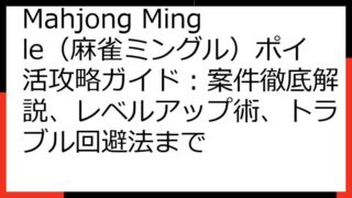 Mahjong Mingle(麻雀ミングル)ポイ活完全ガイド:高還元ポイントサイト徹底比較と攻略法 Mahjong Mingle(麻雀ミングル)のポイ活案件に興味をお持ちですか? この記事では、現在提供されているポイ活案件の最新情報から、将...