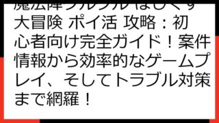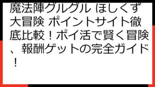 魔法陣グルグル ほしくず大冒険 ポイ活完全ガイド:最新情報からお得な始め方まで徹底比較! 「魔法陣グルグル ほしくず大冒険」でポイ活を始めたいけど、どんな案件があるの? どのポイントサイトがお得なの? そんな疑問を抱えるあなたのために、本記...