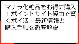 マナラ化粧品をお得に購入!ポイントサイト経由の徹底ガイド - 最大限の還元を受ける方法 この記事では、「マナラ化粧品(MANARA) ポイントサイト 経由」で情報を探しているあなたに向けて、マナラ化粧品を最もお得に購入するための方法を詳しく...