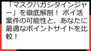 マスクハガシタインジャー 「マスクハガシタインジャー」を徹底解剖! ポイ活案件の可能性と、あなたに最適なポイントサイトを比較!