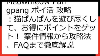 Meowmeow Pangpang(猫ぱんぱん)ポイ活完全ガイド: 案件比較から攻略、おすすめポイントサイトまで Meowmeow Pangpang(猫ぱんぱん)は、可愛い猫たちとブロック崩しを楽しめる人気のゲームです。 この記事では、この...