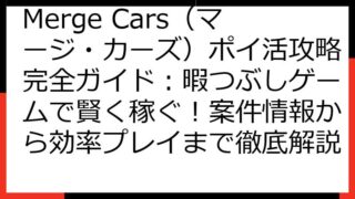 暇つぶしゲーム「Merge Cars」(マージ・カーズ) 暇つぶしゲーム「Merge Cars」(マージ・カーズ)ポイ活徹底比較!案件の探し方、攻略法、ポイントサイト情報まで網羅