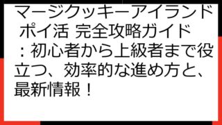 マージクッキーアイランド ポイ活攻略! 報酬比較から効率的な稼ぎ方まで徹底解説 「マージクッキーアイランド」は、クッキーをマージして島を発展させる、可愛らしいゲームです。 この記事では、そんな「マージクッキーアイランド」でポイ活を考えている...