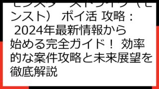 モンスト ポイ活 完全攻略!2024年最新情報から将来の可能性まで徹底解説! モンストをプレイしていて、もっとお得にゲームを楽しみたいあなたへ、この記事ではモンストのポイ活を徹底的に攻略するための情報をまとめました。 最新のポイ活案件情報は...