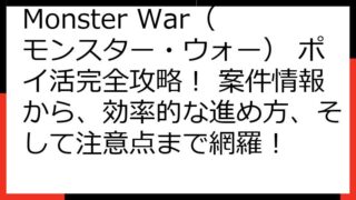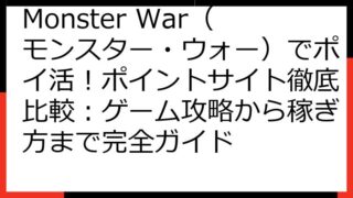 Monster War(モンスター・ウォー) ポイ活 完全攻略! 案件情報から効率的な進め方まで Monster War(モンスター・ウォー)は、戦略性と育成要素が魅力のゲームです。 ポイ活案件を活用すれば、ゲームを楽しみながらポイントを獲...