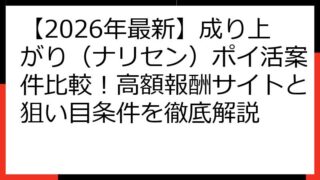 成り上がり(ナリセン) 【2026年最新】成り上がり(ナリセン)ポイ活案件比較!高額報酬サイトと狙い目条件を徹底解説