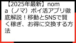 noma(ノマ)アプリは安全?徹底解析!危険性・安全性・評判から使いこなす秘訣まで 「noma(ノマ)」という移動系ポイ活SNSアプリ、気になっていませんか? 日常生活の移動や地域情報の共有でポイントが貯まるという魅力的な仕組みですが、「危...