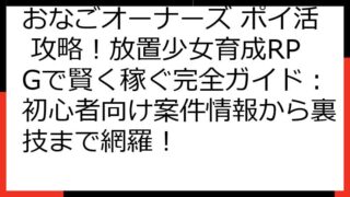 おなごオーナーズ ポイ活攻略! 2024年最新ポイントサイト徹底比較と高報酬獲得術 「おなごオーナーズ」は、美少女キャラクターを育成して戦う放置系RPGとして、注目を集めていますね。 この記事では、そんな「おなごオーナーズ」をお得にプレイす...
