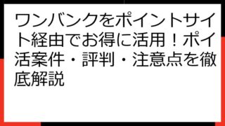 ワンバンク ワンバンクをポイントサイト経由でお得に活用!ポイ活案件・評判・注意点を徹底解説