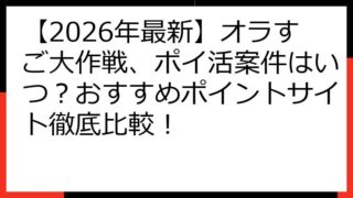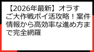 【2026年版】オラすご大作戦、ポイ活案件はいつ?おすすめポイントサイト徹底比較! 「クレヨンしんちゃん:オラのすごろく大作戦」、通称「オラすご大作戦」をプレイ中のあなたへ。 「ポイ活でお得にゲームを楽しみたい!」と考えていませんか。 しか...