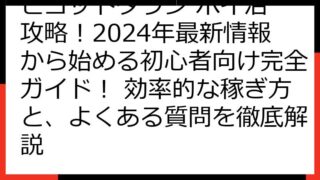 ピコットタウン ポイ活完全ガイド:2024年最新版!おすすめポイントサイト徹底比較と攻略法 ピコットタウンのポイ活に興味をお持ちのあなたへ、このガイドは、ピコットタウンで効率よくポイントを稼ぐための完全情報をお届けします。 最新の案件情報、...