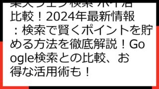 楽天ウェブ検索はポイントサイト経由がお得?2024年最新情報と賢いポイ活術 楽天ウェブ検索を利用して、ポイ活に挑戦したいと考えているあなたへ、この記事では、楽天ウェブ検索とポイントサイトを組み合わせた、お得なポイ活術を徹底解説します。 楽天...