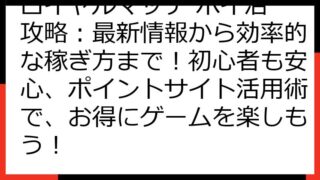 ロイヤルマッチ攻略!2025年最新版:ポイントサイト比較で最大報酬を獲得する方法 ロイヤルマッチは、世界中で大人気のマッチ3パズルゲームです。 ポイントサイトを活用することで、ゲームを楽しみながら、お小遣いを稼ぐことも可能です。 この記事で...