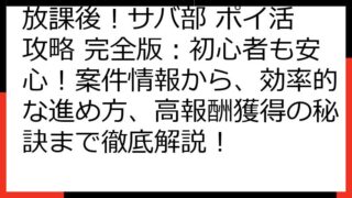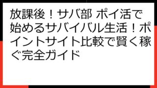 放課後!サバ部 ポイ活攻略!ポイントサイト徹底比較&効率的な稼ぎ方 この記事では、「放課後!サバ部」のポイ活案件に焦点を当て、ポイントサイトの比較や、効率的な攻略方法を徹底的に解説します。 ゲームを楽しみながら、お小遣いを稼ぎたいあなたのた...