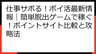 仕事サボる!ポイ活最新情報|簡単脱出ゲームで稼ぐ!ポイントサイト比較と攻略法 「仕事サボる!」というユニークなタイトルから、思わずプレイしてみたくなる「仕事サボる!-暇つぶし 簡単謎解き脱出ゲーム」。 この記事では、このゲームがポイ活案件と...