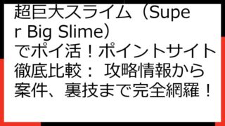 超巨大スライム(Super Big Slime)でポイ活! 徹底比較ガイド: 攻略、案件、ポイントサイト情報 この記事では、大人気ゲーム「超巨大スライム(Super Big Slime)」でポイ活を始めたいあなたに向けて、徹底的な情報をお届...