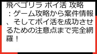 飛べゴリラでポイ活は可能?ポイントサイト案件徹底比較と将来性 この記事では、「飛べゴリラ」という大人気ゲームでのポイ活に焦点を当て、ポイントサイト案件の可能性や、お得にプレイするための情報を詳しく解説します。 現状の案件状況から、将来的な案...