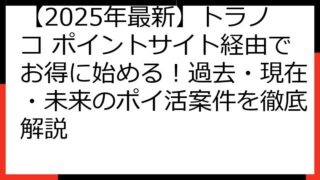 【2025年最新】トラノコポイ活完全ガイド!過去・現在・未来の案件を徹底比較 トラノコでのポイ活に興味をお持ちですか?。この記事では、過去に登場した高額案件から、現在利用できる安定案件、そして将来期待されるポイ活の可能性まで、徹底的に比較・...