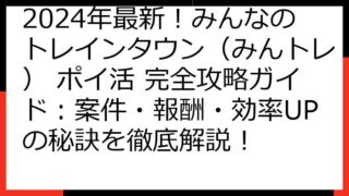 【2024年最新】みんトレ ポイ活攻略!ポイントサイト徹底比較と案件獲得への道 この記事では、「みんなのトレインタウン(みんトレ)」のポイ活案件について、徹底的に解説します。 最新の情報に基づき、案件の現状、将来性、そして獲得に向けた具体的...