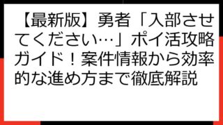 【2024年最新】『勇者「入部させてください…」』ポイ活案件徹底比較!おすすめポイントサイトと攻略法 「勇者「入部させてください…」」でポイ活を始めたいあなたへ。 この記事では、現在そして過去のポイ活案件の状況を徹底分析し、将来的な案件の予...