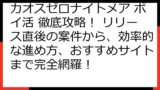 リリース直後のポイ活事情から、将来的な案件の予想、そしておすすめのポイントサイト比較まで、カオスゼロナイトメアのポイ活を最大限に楽しむための情報が満載です。