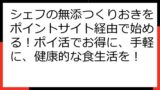 複数のサイトを比較検討することで、より多くのポイントを獲得し、実質無料で「シェフの無添つくりおき」を利用することも可能です。