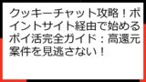 ポイ活初心者から上級者まで、クッキーチャットで最大限の恩恵を受けるための情報が満載です。
