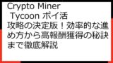 この記事を読めば、Crypto Miner Tycoonのポイ活案件に関する、最新の情報を正確に把握できます。