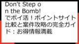 この記事を読めば、あなたも「Don’t Step on the Bomb!」ポイ活マスターになれるはずです。
