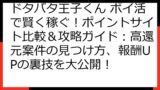 さらに、ポイ活で成果を出すためのゲーム攻略法、序盤から上級者まで役立つ育成戦略、イベント活用術、そしてポイ活成功のための注意点まで、あなたの「ドタバタ王子くん」ポイ活を全力でサポートします。