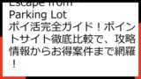 この記事を読めば、「Escape from Parking Lot」でポイ活を最大限に楽しむための知識が手に入り、あなたのポイ活ライフがさらに充実するでしょう。