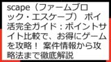 この情報を活用すれば、Farm Block Escape のポイ活で、より多くのポイントを獲得し、お得にゲームを楽しむことができるでしょう。