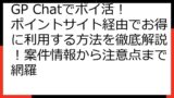 GP Chatのポイ活に興味がある方は、必見です。