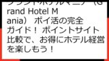 グランドホテルマニア(Grand Hotel Mania)のポイ活に興味をお持ちの皆さん、ようこそ!