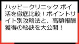 この記事では、「ハッピークリニック」のポイ活を徹底攻略します。