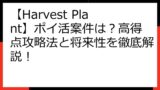 - 「ハーベストプラント(Harvest Plant)」と似た名前のポイ活案件として、「Harvest Land(実りの地)」というアプリの案件が多数存在するため、混同しないように注意が必要です。