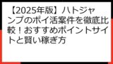 2025年5月30日時点での確認情報に基づき、各ポイントサイトの「ハトジャンプ」ポイ活案件の特徴をまとめます。