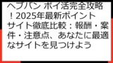 最新情報を確認し、効率的にポイ活を進めましょう。