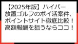- 【2025年最新】ハイパー放置ゴルフ ポイ活攻略ガイド!案件状況から報酬・おすすめサイトまで徹底解説