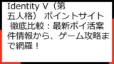 この記事では、大人気非対称対戦ゲーム「Identity V(第五人格)」のポイ活に焦点を当て、読者の皆様が知りたい情報を網羅的に解説します。